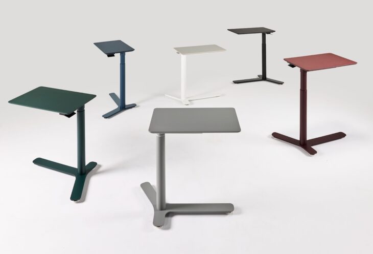 Float Mini offers versatile sit-to-stand solutions tailored to diverse work environments. Its design allows users to move from sitting to standing and back again, effortlessly. The table’s offset leg maximizes stability while providing more usable space beneath the desk. Unlike a centered base, the offset base allows the desk column to be positioned closer to the edge, which not only improves legroom but also makes it easier to place against walls or underneath side tables. Float Mini is available in a range of hues, so workspaces can be matched to specific styles and surroundings. Float Mini is available in various surface options that include sustainable bamboo and a new natural linoleum material. The eco-friendly linoleum is wear-resistant, anti-static, and fingerprint-proof, featuring a soft matte finish.