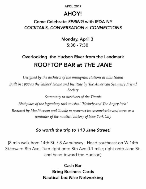 IFDA Apr. 3: Cocktails, Conversations & Connections RSVP: ifdanyny@verizon.net Previous Article IFDA Apr. 6: Sing into Spring Next Article Be Brasil During Milan Design Week to Offer a Panorama of Brazilian Contemporary Design