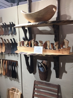 This upcycled wood collection of kitchenware and tabletop speaks green. “Our story began with what to do with trees that have fallen and are rotting in the woods,” said co-owner Michele Jurado. Her partner Spencer Peterman found that this wood, which is disfigured by the beginnings of decomposition, when turned on a lathe produces strikingly unique bowls and other pieces. Almost all the wood they use is from locally fallen trees in Western Massachusetts, such as maple, cherry or black walnut. All their items are food-safe. Products featured at left include bottle stoppers and salad tossers.