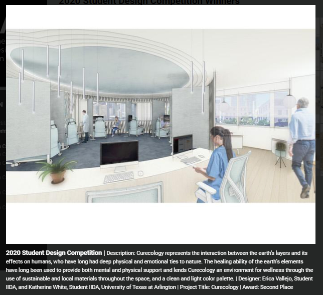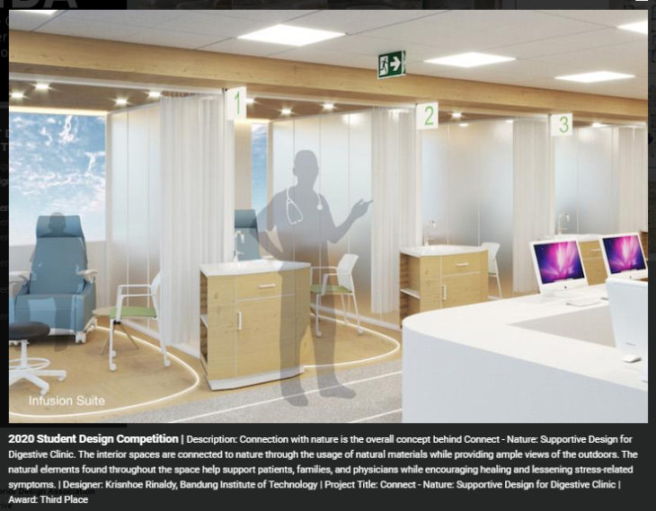 “The Student Design Competition allows us to preview what the future of design has in store through these real-world design solutions,” said IIDA Executive Vice President and CEO Cheryl S. Durst, Hon. FIIDA. “This year’s winning submissions demonstrated design sophistication and a strong understanding of what all who experience healthcare spaces—from individuals and families to employees— require in a healing environment.”