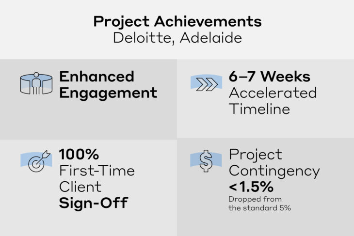 “For our key decision-making group to be able to connect in the immersive virtual environment prior to any activities commencing onsite was powerful,” said Hendri Mentz, Managing Partner, South Australia. “When navigating the design, we were able to fine tune design outcomes and provide certainty to how we addressed business requirements. This resulted in smoother delivery, less changes in construction and a better change management outcome.”