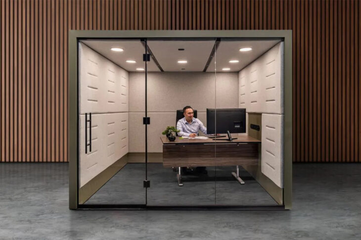 One of the standout features of Portals Room is its easy customization. With a vast array of finish options, businesses can create a look that perfectly aligns with their design aesthetics. As part of the Portals Family, Portals Room complements Portals Connect, a customizable video call pod, Portals Studio, an ADA compliant, large single-person workspace and Portals Quiet and Portals Open. Together, they offer a cohesive and versatile suite of work settings that cater to the diverse needs of employees.