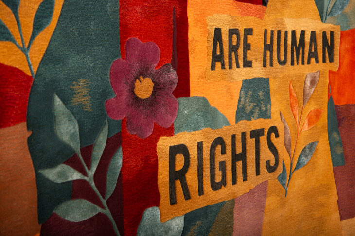 Throughout February, Woven Resistance will travel the country for a series of live exhibitions. In partnership with Freehand Hotel Group, a selection of carpets will be spotlighted with one-day, in-person events at Freehand New York (February 5), Freehand Miami (February 11), Freehand Chicago (February 18) and Freehand Los Angeles (February 23). From February 5 through February 25, every carpet will be available through an online silent auction to benefit LGBTQ Rights, Civil Liberties and the Fight Against Climate Change.