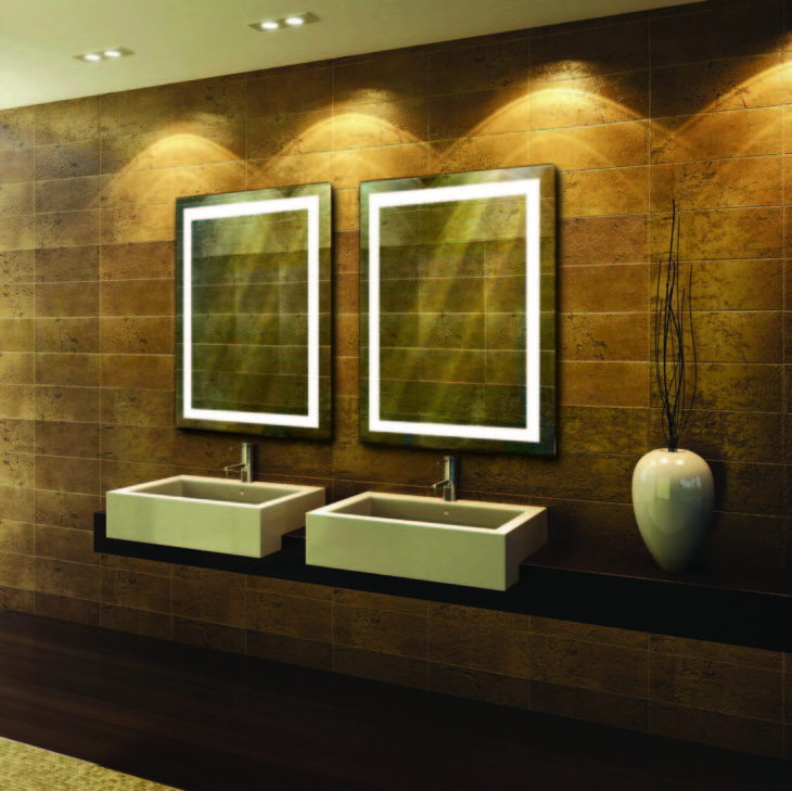 Product Applications: Custom Lit Mirrors are geometric; add value to the interior design and décor of any bathroom, bedroom, and vanity or wall space in hotels, resorts, private clubs, casinos or homes. Ideal for use in restrooms in restaurants, bars, hotel lobbies, recreation areas, guest rooms, locker rooms; healthcare, assisted living and long-term care facilities; entryways, bathrooms, bedrooms, corridors, dining and living rooms.
