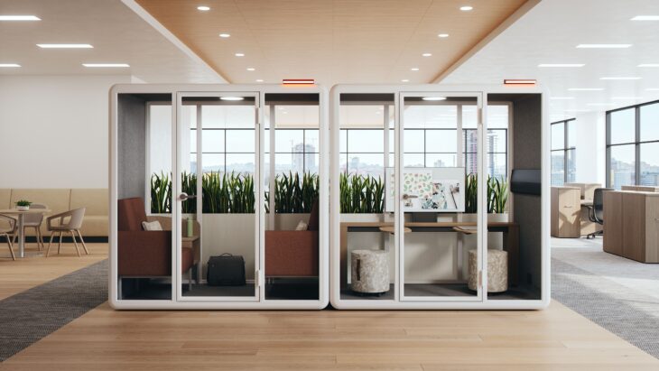 Enhanced to offer thoughtfully designed surfaces and media support, new seating options, and smart accessories, Kolo Pods are well equipped to host collaboration, provide privacy, and promote productivity. The portfolio now includes a collaborative credenza that easily adds a worksurface, pivoting tablets, power, and media support to Kolo 2, Kolo 4, and Kolo 6 pods. In addition, an occupancy light and locking privacy handle have been added to the collection.
