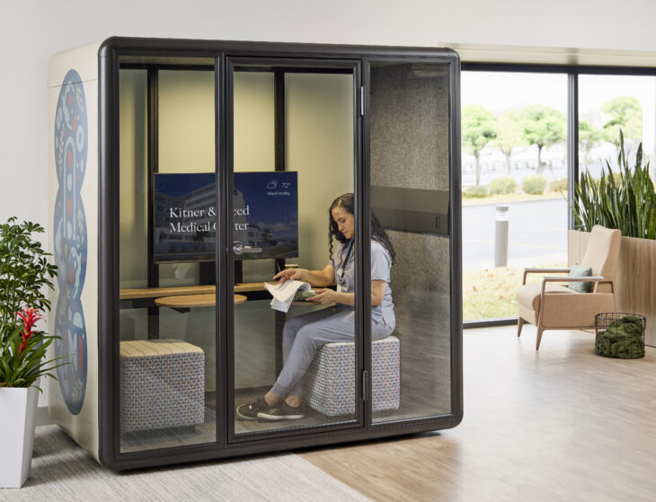 Developed to offer a choice for privacy in open settings, Kolo Pods are an ideal solution for working, learning, and healing spaces. Available in five sizes and an ADA-compliant model, the Kolo Pod makes it easy to find the right solution for any environment.