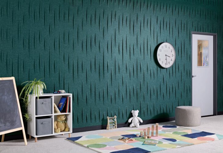 Inspired by the lyrical motion of sheet music, Kirei Henge is a fully unique acoustic wall solution that brings dimensional rhythm to interior spaces. Its construction of 12mm recycled PET with a Class A fire rating features elegantly raised, repeated forms that play with light and shadow to create a visually dynamic, tactile surface. With a generous full-panel size of 108″ x 46″, Henge is ideal for larger installations where sound management and statement-making aesthetics are desired.