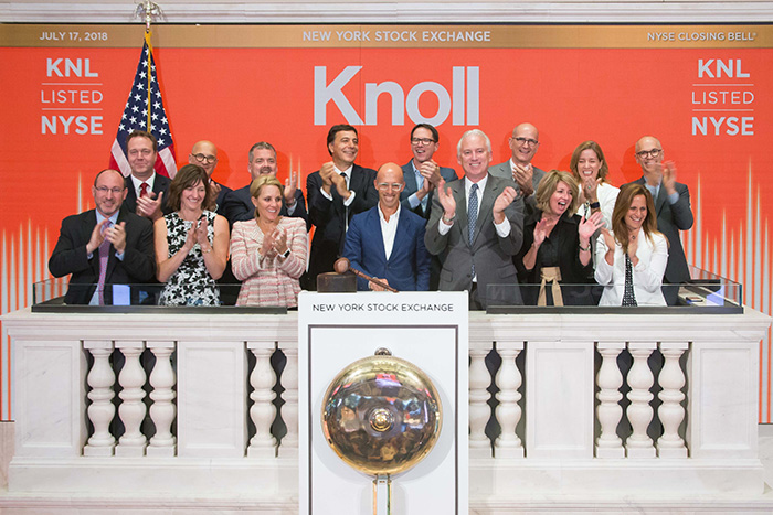 The New York Stock Exchange welcomed Knoll (NYSE:KNL) to the closing bell ceremony on Tuesday, June 17, 2018. Joined by Jim Byrne, NYSE Head of U.S. Listings, Andrew Cogan, Chairman, President & CEO of Knoll, struck the gavel as the closing bell rang throughout the New York Stock Exchange. Knoll, Inc. was first listed on the NYSE in 2004. Fourteen years later, Knoll is back in honor of the brand’s 80th Anniversary.