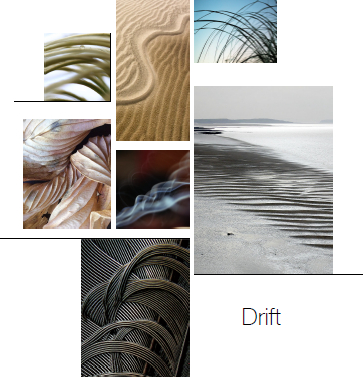 Drift mimics the gestures and linear shifts found in windblown sand. The curved lines ebb and flow across the surface, intersecting and diverging to create shadow and texture. Pearl or metallic inks highlight the linear pattern cross currents and enhance the curvature of the emboss that is proprietary to KnollTextiles.