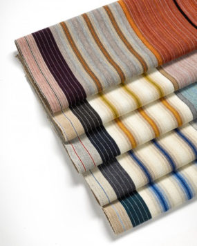 Signal has a combination of subtle pinstripes with a soothing ombre. It was designed so the weight and value of color would read equally on the face and back, creating a well-balanced surrounding.