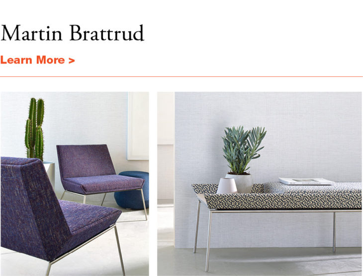 Offering carded, graded-in and COM KnollTextiles fabrics, our impressive roster of Program Partners serves the corporate, hospitality, healthcare, government and education markets. Explore endless design possibilities with a range of textile offerings—from timeless classics to high-performance and budget conscious favorites.