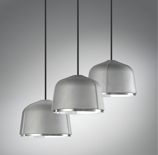Design duo Lucidi Pevere experimented with unconventional materials as a foundation of the suspension lamp. The outer layer is “rough around the edges”, made of raw aluminum in creating a rugged texture. A discreet inner shade is constructed using a contrasting shiny and smooth metal to reflect warm rays from the LED light source. A sleek metal ring at the rim adds even more texture and complexity to the lamp. The over-all experimentation with materials makes Arumi’s dome shape resemble that of a raw diamond when lit up, fitting into an array of contract settings.