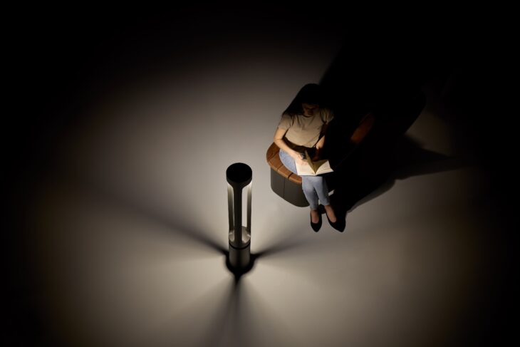 The family includes 12’ and 10′ column lights, a 4’ path light and a 4’ unlit bollard. Each features three sculptural arms that emerge seamlessly from the element’s base. When lit, light is cast downward along the arms to create an alluring ground pattern and poetic interplay between illumination, shadow, object and surroundings. In the pedestrian-scale column lights, high angle glare is eliminated (G-0), enhancing the safety and visual experience of urban outdoor space. In the path light, directed optic design provides superior visibility and confidently extends the usability of outdoor space. Each Outline element Outline features a seamless transition between luminaire and ground plane, firmly anchored with no base cover or part lines.