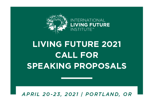 The International Living Future Institute is excited to announce our annual Call for Proposals for our 15th annual Living Future event, scheduled to take place at the Oregon Convention Center in Portland, Oregon, April 20-23, 2021. Due to the unknown variables surrounding the Covid-19 pandemic, there is a possibility that this event will be broadcast in a digital format.