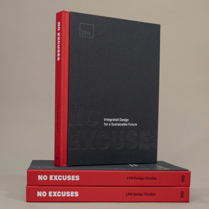 Inspired by the firm’s submission for the AIA 2025 Architecture Firm Award, “No Excuses” is organized around the core elements of LPA’s philosophy: “Everything Counts, There is Always a Way and We Don’t Do This Alone.” The text breaks down the elements of shared responsibility, integrated design, informed design and applied research at the heart of the firm’s design process.