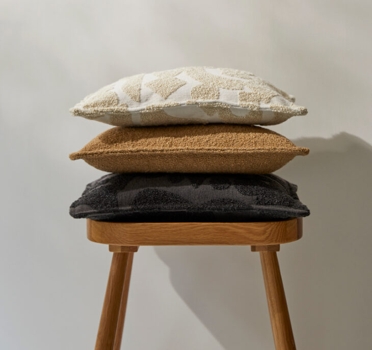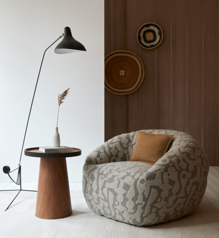Available in 8 colorways, Artifact’s large-scale motifs and repeating patterns are inspired by sculptural forms which depict the intrigue of ancient treasures suspended in time. This boucle textile has an elegance in simplicity and beauty in irregularity. Its Form and texture are explored through have become universal nostalgic silhouettes.