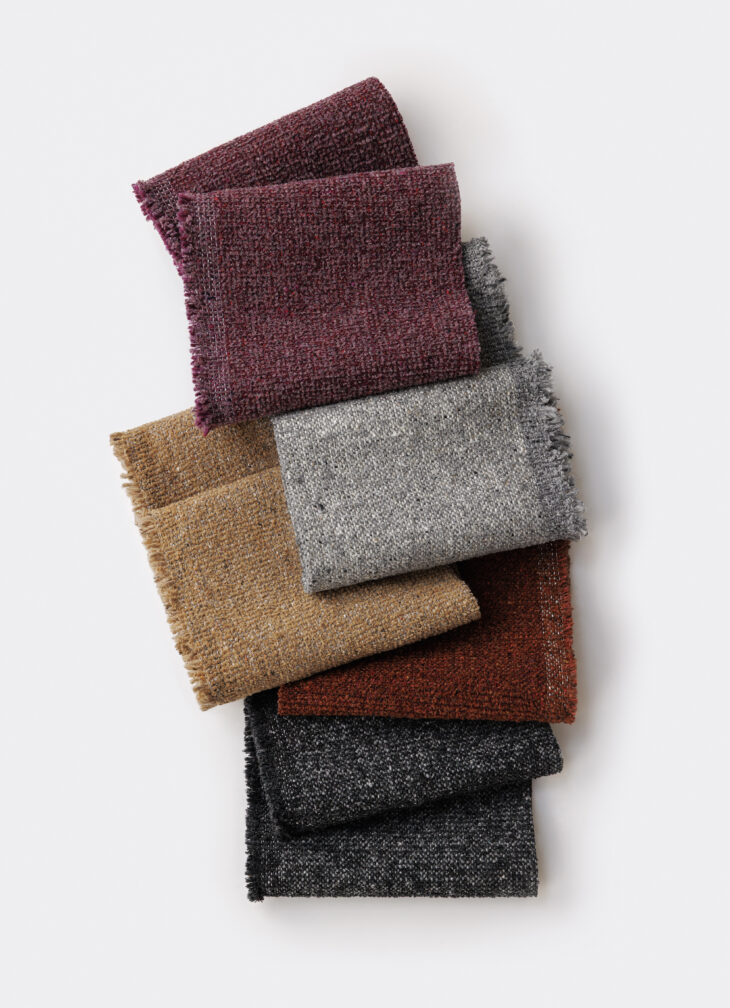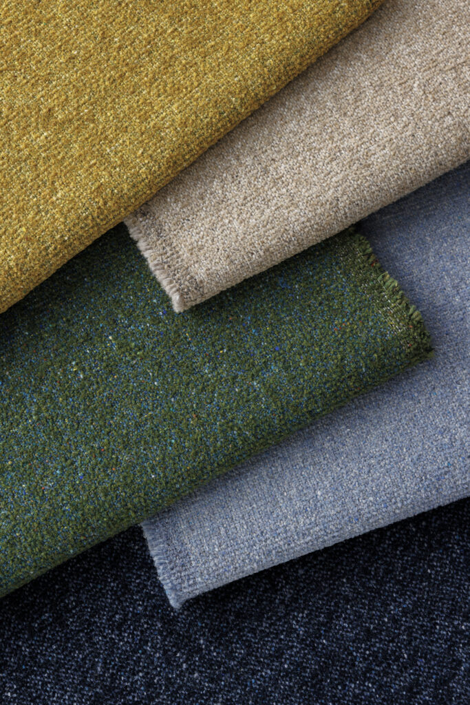 The recycled straight and wool chenille yarns are woven into a dimensional, earthy surface texture with multicolor flecks. Visually and physically tactile, Earthbound shares yarn components with Melange Check, Wool Fleck, Graph Speck, Everyday Boucle, Forward Motion, and Stability—fellow Garment Waste textiles that make coordinating color palettes easy across the 16 available colorways.