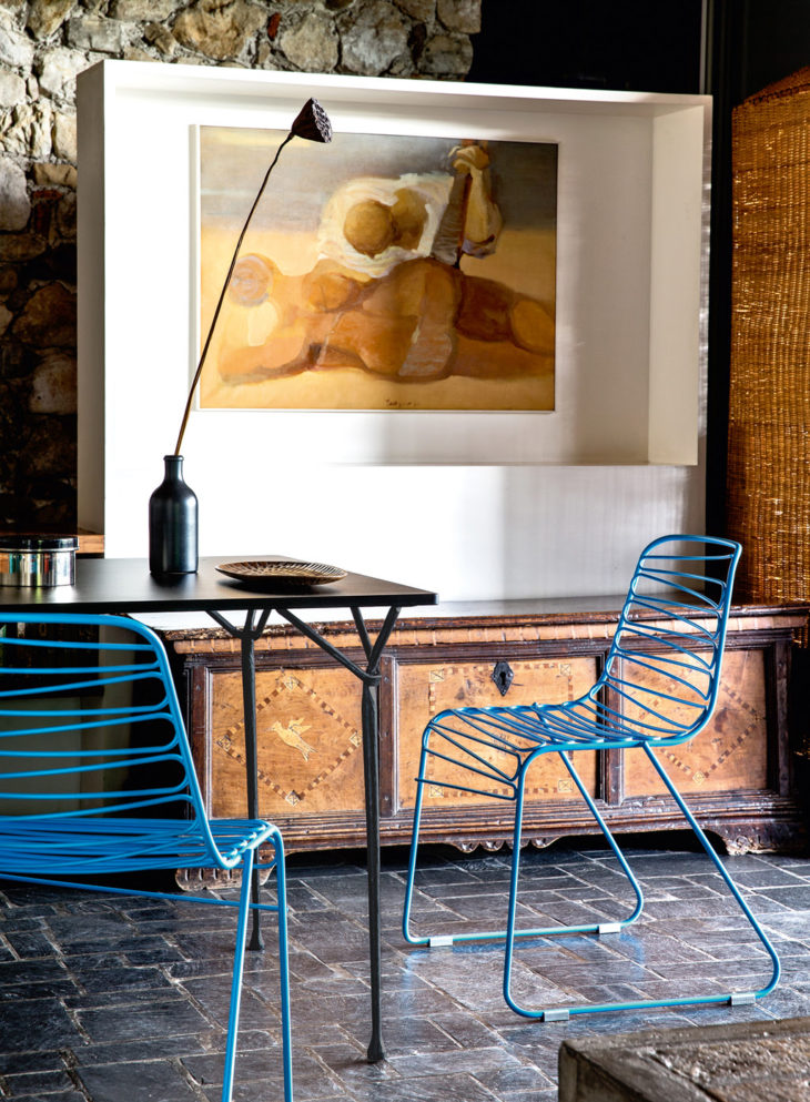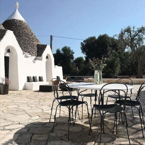 MERITA TRULLI, Puglia, Italy – In the countryside of Ceglie Messapica, in Puglia, a group of trulli and old buildings are located, that have been renovated into an inviting holiday residence. The interior design is characterized by the fusion of vintage furniture and contemporary design, combining natural colours and organic shapes. The Vigna chair and table in granite grey perfectly fit with the rural context, complementing the original forms typical of these homes.