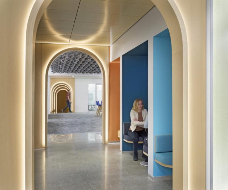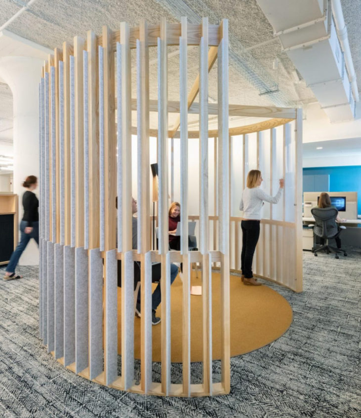 Mark Richey Woodworking was thrilled to work with general contractor Lee Kennedy Co. on the project. Mark Richey created a permeable collaboration pod out of ash wood. The pod takes its design from kiva circular meeting rooms. The Mark Richey team also brought to life arched passageways, also in ash, and provided banquette seating. The goal was depth and clean lines while also incorporating existing features. See more