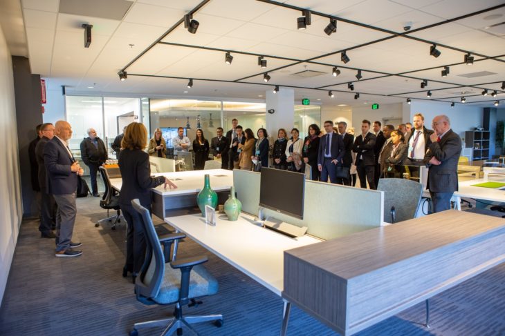 Massachusetts Lieutenant Governor Karyn Polito and nearly 30 international delegates recently visited AIS, the largest manufacturer of commercial office furniture and seating in New England, as part of National Manufacturing Month celebrations. AIS was the first stop on a tour of Central Massachusetts, sponsored by the Mass Office of Business Development and the Mass Office of International Trade and Investment.