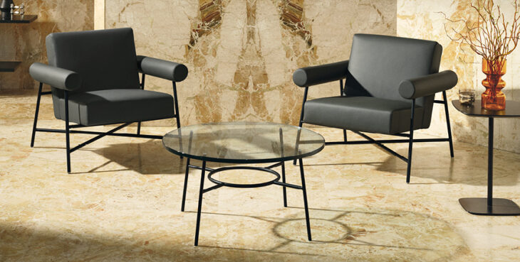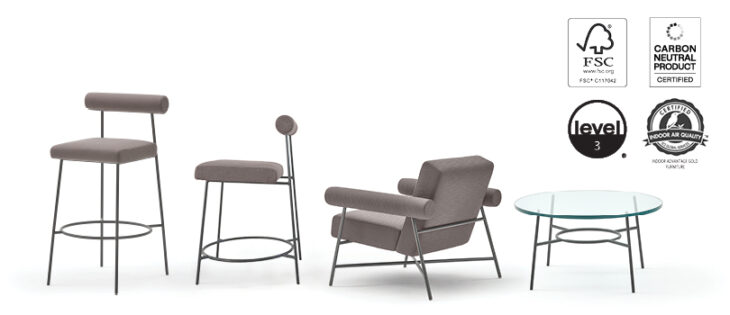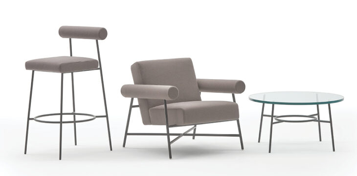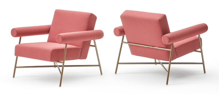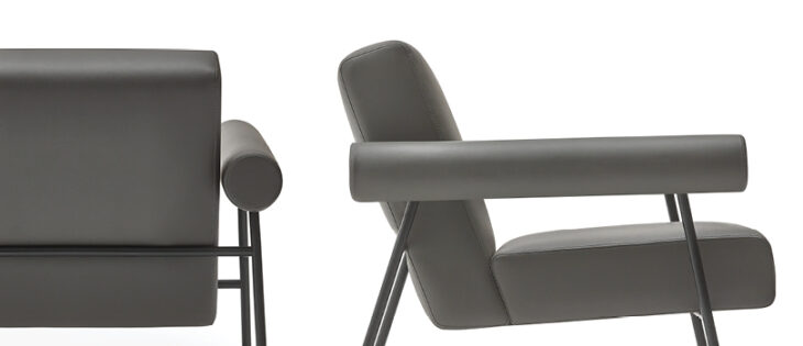 Toob’s levity is grounded by its comforting upholstered elements to create an exposed, spatial effect. The thoughtfully angled square seat cushions seamlessly contrast the tubular armrests, which, as the only curves to an otherwise angular chair, are the striking focal point.