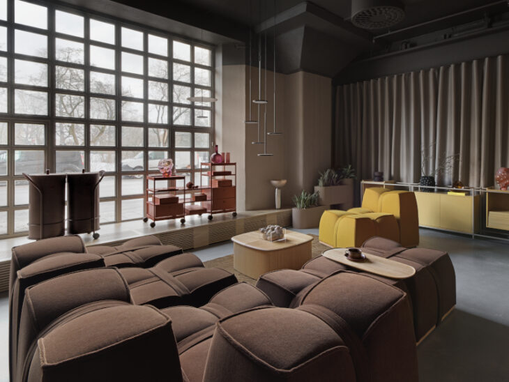 The store’s interior is designed to reflect Mizetto’s design language and modular philosophy. Open spaces allow visitors to move freely between furniture pieces and installations, while tactile materials and playful color accents create contrast and warmth.