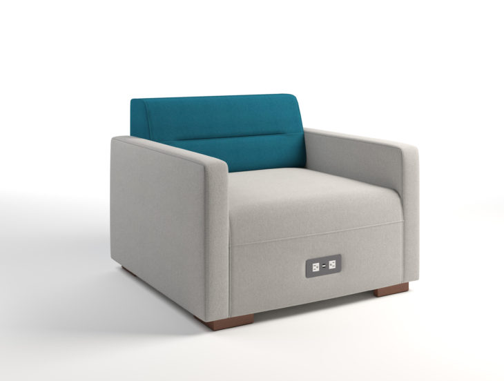 “The Hazel collection delivers a great soft seating choice for a variety of applications. With its modern design and stitching details, Hazel brings style to high traffic areas and touchdown spaces. The array of products in this line include a single chair, corner, chaise and ottoman, to make any configuration work in any space. Hazel is a great spot to power up and lounge around in, for the most comfortable sit.”