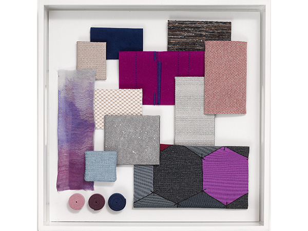 Making a bold and artful statement is large scale, double width Bounce drapery. Bounce combines a digitally printed circle and grid motif on 100% Trevira CS polyester. Pivot Stitch wrapped panel and direct glue wallcovering represents KnollTextiles’ first embroidered wallcovering.