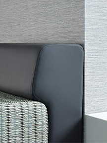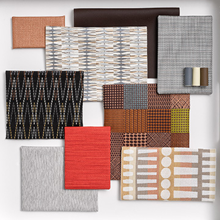 The initial spark for the collection came from a piece of intricate handmade artwork. This directly informed the design direction of It’s Complicated, a complex and rhythmic digitally printed polyurethane upholstery. Patterns Patchwork and On Point bring the concept of needlework to life. Patchwork offers a modern take on traditional quilting, using weave patterns and color instead of individual fabric swatches to create the allover ‘patchwork’ appearance. On Point is a classic flame stitch made modern through scale and bold color work. Balancing out the patterns in the collection is Premier, our first Silicone upholstery. Premier is a superior product comprised of a proprietary Silicone resin system that enhances its resistance to scuffing, scratching and abrasive cleaners, all while retaining a soft and luxurious hand.