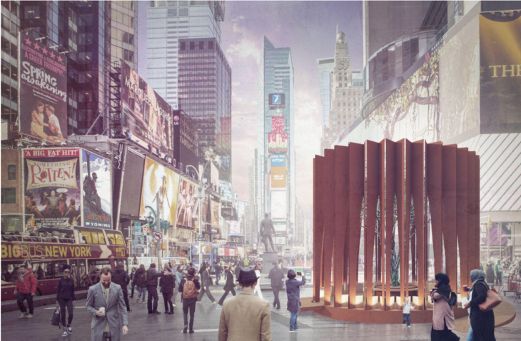 New York City’s premier public design exhibition, Design Pavilion, will return for its 5th edition on May 7 – 15 as part of NYCxDESIGN. The internationally acclaimed 9-day event celebrates creativity and sustainability by offering inspiring interactive installations by leading architects and designers in Times Square and beyond.Two inspiring installations on view are FILTER and Pratt’s Pop Up/Drop Off. A 20-foot-tall steel ellipsoid pavilion in Times Square, FILTER, was thoughtfully designed by CLB Architects to create a place of contemplation removed from the chaos of city noise and everyday life. Developed by a team of Pratt undergraduate architecture students, Pratt’s Pop Up/Drop Off is an inflatable structure created to investigate design activism around plastic waste, available to view on West 46th St. and 7th Ave.