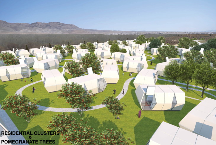 DISASTER RELIEF-FOLDING POD rendering designed by Hariri & Hariri Architecture D.P.C.