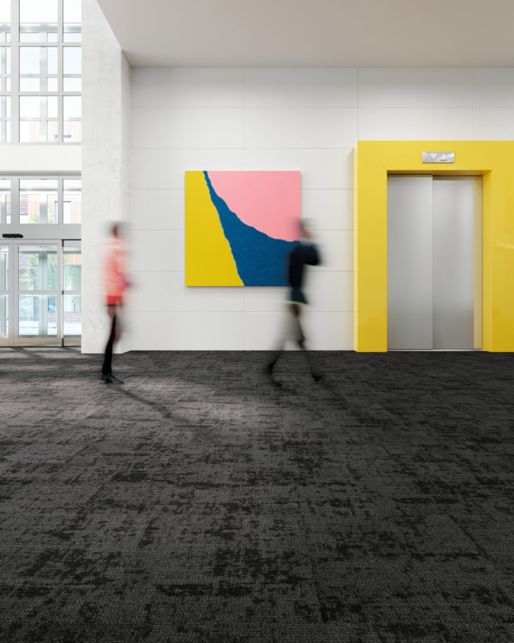 Patcraft, a leader in high-performance commercial flooring, has launched its newest modular collection, Walk Forward. An entrance flooring solution that offers scrubber capabilities to capture soil and reduce slips and falls for entry spaces, Walk Forward features modern, abstract patterning to create scale and movement across the floor. The 24” x 24” tiles are available in four colorways and are designed to seamlessly coordinate with other Patcraft soft and hard surface flooring products for maximum design flexibility.