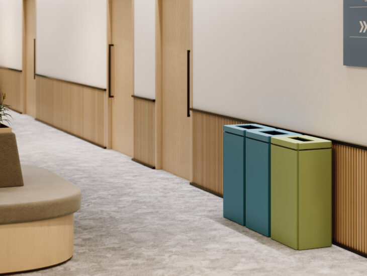 With Reveal, waste management becomes a statement piece. Featuring a clever corner reveal detail and interchangeable bases and tops, this collection allows users to mix, match, and elevate their environments. Whether in corporate offices, educational institutions, or healthcare facilities, Reveal seamlessly integrates into various settings, enhancing both functionality and aesthetic appeal.