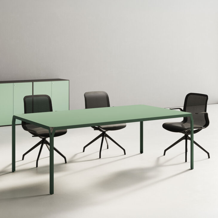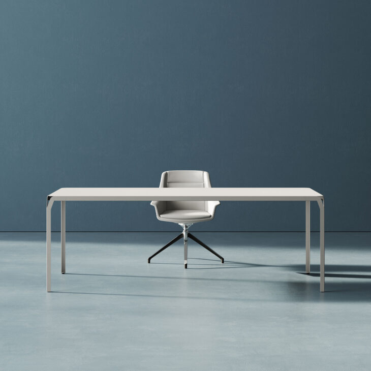 York is defined by strength and restraint. Clean lines and precise proportions give the table a confident presence suited for focused work, collaboration, and shared spaces. A sculpted cable pass-through is seamlessly integrated into the steel frame, resolving wire management as part of the design itself.