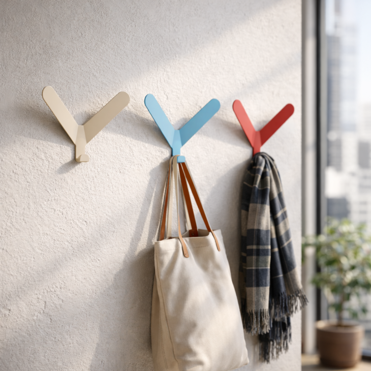 Hawk translates this architectural clarity to the wall. Laser-cut from 100% post-consumer steel and inspired by the form of a wing in motion, Hawk functions as both utility and sculptural detail. Compact in scale yet visually distinctive, it keeps coats, bags, and scarves neatly in place while adding dimension to a space. Hawk is available in the full range of Peter Pepper Products powder-coat colors.