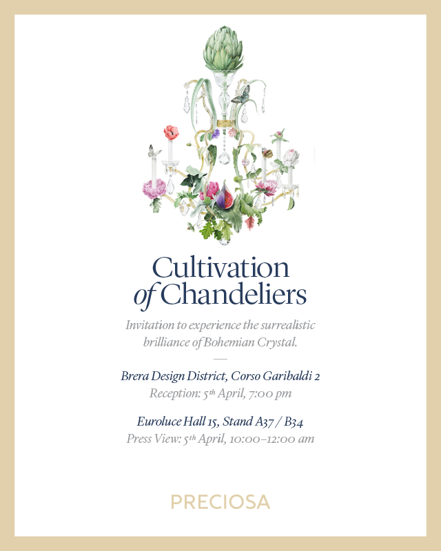 Experience the luxury, elegance and future of Bohemian crystal in Milan at the exhibition “Cultivation of Chandeliers. Since 1724.“ Euroluce: Hall 15, stand A37/B34 and Brera, Corso Garibaldi 2.