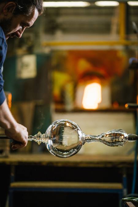 Thanks to the region’s natural wealth and especially due to local craftsmanship and talent, the glassmaking traditions of Kamenický Šenov, home to Preciosa Lighting’s main production facility, have remained unspoiled for centuries. The oldest glassworks site found in Crystal Valley dates back to 1250. From the 17th Century crystal clear glass, called Bohemian Crystal, started to be melted down and shaped. This glass became a local speciality and became so popular around the world, that the Czech lands became the most important glass exporter in the world by the mid-18th Century. At this time the first workshops specialising in the production of crystal lights started to appear in Crystal Valley. The oldest professional glassmaking school in Europe has operated in Kamenický Šenov since 1856 and this, together with the local tradition of fathers passing glassmaking skills down to their children, has had a major impact on the craft and technical skills of local master glassmakers. To this day, local people continue to protect the glass making secrets of their ancestors as part of the local tradition.