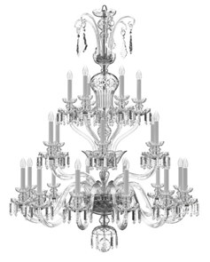 The idea of refining crystal glass with lead, to allow for more complex crystal cutting and to create sparkling effects came from England, but the Bohemian cutting masters were seen as being the best for its production. The Bohemian Crystal chandelier is a hybrid of a simple, functional glass design, enriched by glass trimmings and chains known from the Versailles and Maria Theresa chandeliers.