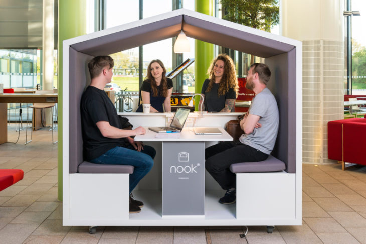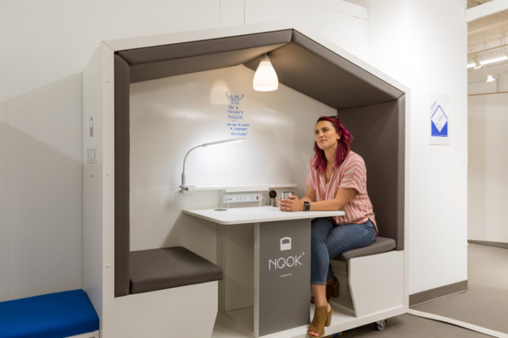 Nook Pod offers flexible meeting spaces designed for privacy, small meetings, and focused work. With the rise of flexible offices and increasingly open-plan working environments, Nook Pods provide a quiet refuge for workers to focus, collaborate, and recharge. Thanks to its mobility, flexibility, acoustics, and integrated technology, Nook is helping the coworking industry improve productivity, space utilizations, and personal communication. Learn more at nookpod.com.