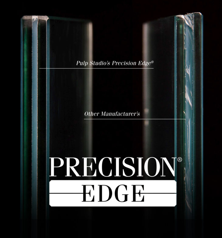PRECISION EDGE® is a proprietary process exclusive to Pulp Studio delivering a high quality, zero-tolerance finish with perfect alignment for both tempered and annealed laminated glass handrails. Codes only require that handrail glass be laminated, but high-quality edgework is imperative for the integrity of the design. With PRECISION EDGE®, designers and property managers do not have to accept a pre-polished laminate product when a better option is available.