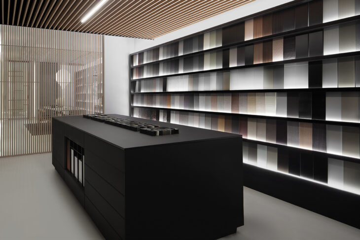 The flagship store also hosts R-Academy—a dedicated space for training and exploration of Rimadesio’s technologies, materials, and finishes—serving as a cutting-edge resource for clients and design professionals alike.