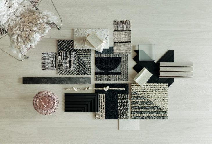 The designs include lines that merge and overlap, bold curves and strong graphical elements that make it highly adaptable at all scales. Tactile comfort alludes to sisal, jute and natural handwoven references that add a crafted feel and a tangible sense of well-being.