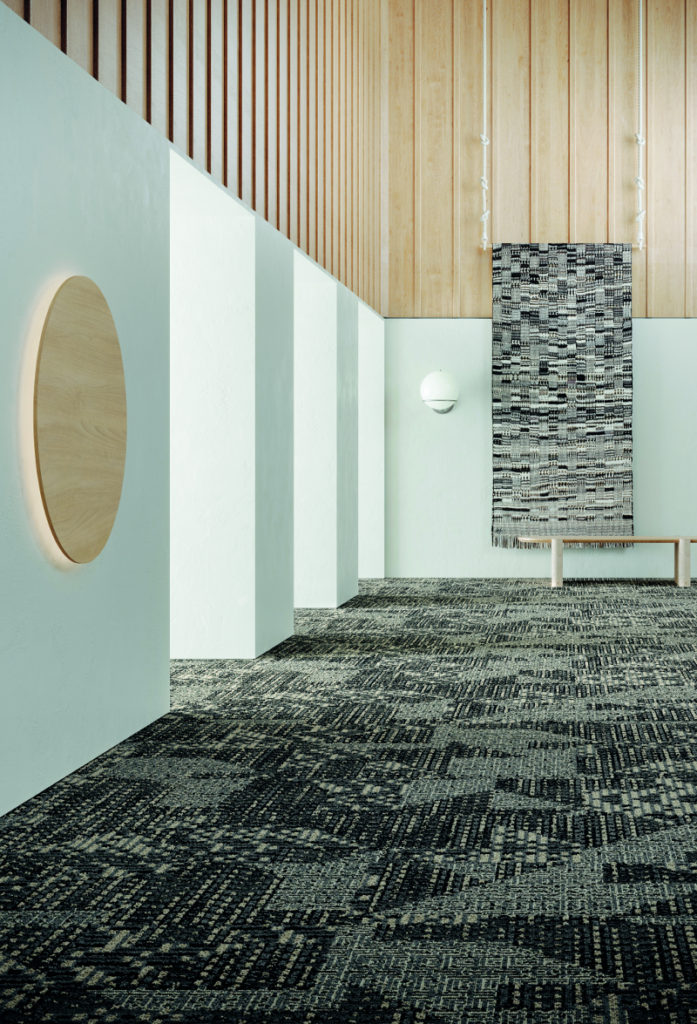 The collection features a subtle palette of light, neutral tones, interspersed with calligraphic lines in a rich black, to create an aesthetic range from artful notes of contrast to harmonious blends in a distinctive set of 17 broadloom patterns and 10 18” x 36” carpet tile patterns. Contemporary clean lines blend with patterns that have a soft painterly edge, in an inspired fusion of textures and large-scale geometry.