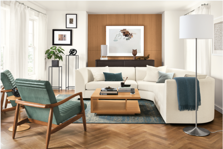 “Fall 2020 is a counterpoint to the clean and masculine look and celebrates the feminine, softer side of design, without being fussy,” explains Jenon Bailie, Room & Board’s Merchandising and Design Director. “There’s a comfort and elegance to the overall aesthetic. Subtle arcs reminiscent of a warm embrace make us feel secure, while more classic design elements like tight-back sofas provide tailored high-performance and no-fluffing required solutions.”