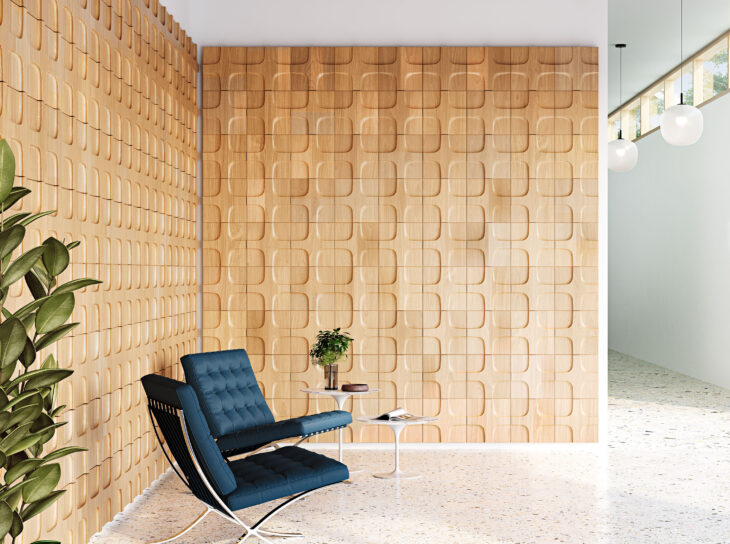 Quartile is a 12-inch square tile that offers a fresh take on a timeless design. Tiles come together to create a striking pattern with a milled surface that emphasizes the natural grain texture of wood. Quartile 1 and Quartile 2 can be used independently or paired for unique patterns and layouts. Offered in six carefully selected wood species, these tiles are designed with a stepped edge that mimics a traditional grout line, a feature that not only adds visual definition, but also simplifies the installation process.