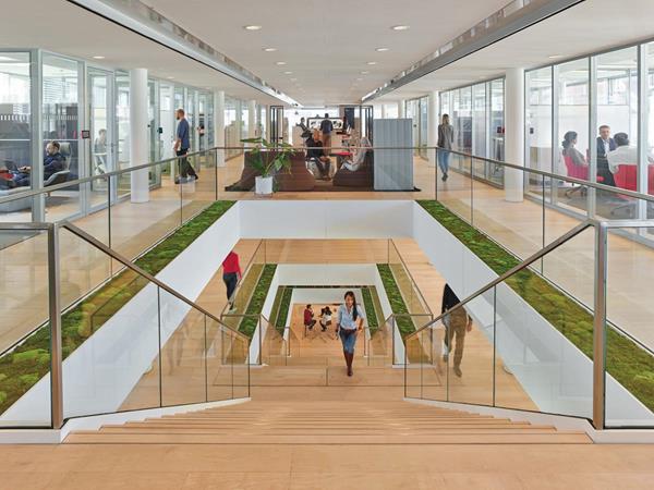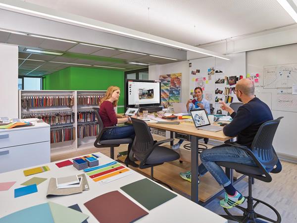 The three-building campus was designed by a diverse, international team of experts including Henn Architects, Munich; Patrick Jouin and Manku Design, Paris; and the Steelcase Design Team.