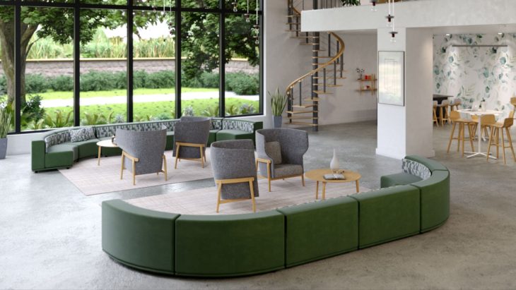 The new distinctive seating elements of four curved ottomans, four curved straight-back sectionals, and a straight-back 90-degree corner add to the versatility of office design. The compatible sectional geometry of the separate parts configures into either a simple single-seat banquette or a complex, room-filling double-backed serpentine. The ability to customize Borough Lounge to fit each user’s style leads to an endless possibility of personalized seating.