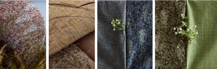 The trio is an ode to the ephemeral, cyclical nature of the world – and to nature’s perseverance – its constant reinvention. The tactility shares the same randomness, serendipity, and order found in nature, capturing fleeting moments of the ever-changing environment, like the weathering of stones or an overgrown garden. ‘Moments of Wander’ not only showcases Christiane Müller’s creative vision but also highlights HBF Textiles’ commitment to artistry, quality, and innovation. Each fabric is skillfully crafted by talented artisans, seamlessly blending Müller’s expertise in material solutions and textiles design with human creativity. The result is a collection that is not only visually captivating but also narrates the harmonious connection between nature, design and impactful materials.