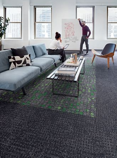 The styles featured in the NY+LON Streets Collection can mix and match with other Interface carpet tiles or LVT for endless design possibilities.