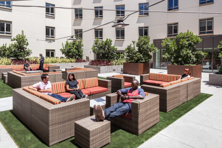 Tangram Interiors, a provider of highly creative commercial interior environments and workspaces, was engaged to provide furniture for the massive USC Village development at the corner of Hoover Street and Jefferson Boulevard in Los Angeles. Tangram collaborated with L.A.-based architectural firm Harley Ellis Devereaux on the project